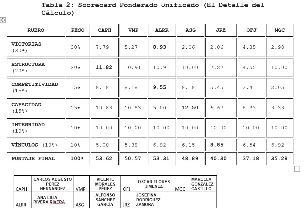 Tabla 2: Scorecard Ponderado Unificado (El Detalle del Cálculo)