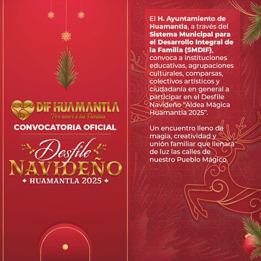 El Sistema Municipal para el Desarrollo Integral de la Familia (SMDIF) de Huamantla mantiene abierta la convocatoria para formar parte del tradicional Desfile Navideño de la quinta edición de Aldea Mágica 2025, programado para el próximo sábado 6 de diciembre.