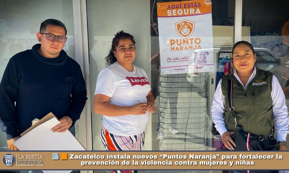 El Gobierno Municipal de Zacatelco 2024–2027, a través del Instituto Municipal de la Mujer (IMMUJER) y en coordinación con la Secretaría de las Mujeres del Estado de Tlaxcala (SMET), consolidó la instalación de diez nuevos Puntos Naranja, espacios seguros destinados a la prevención, atención y canalización de mujeres, adolescentes y niñas que enfrenten situaciones de riesgo o violencia en espacios públicos.