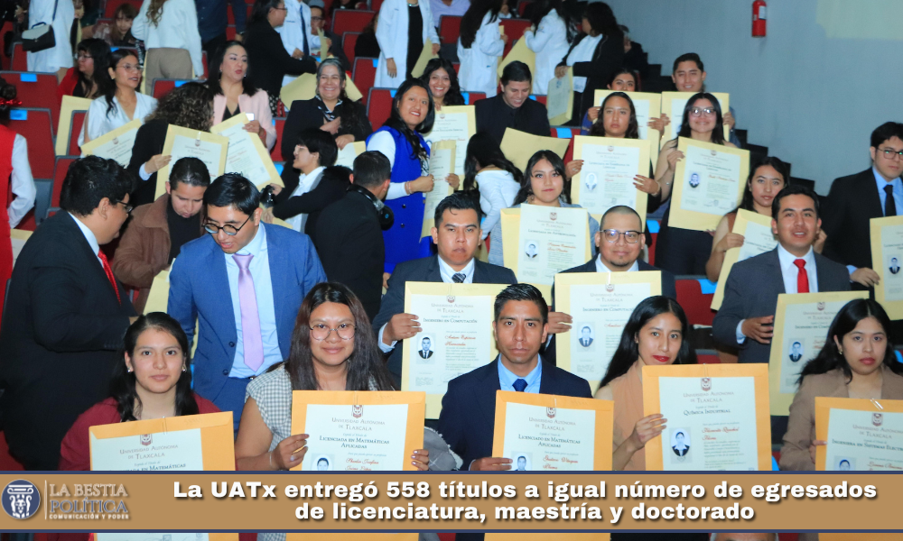 Culminando un proceso que requirió de un esfuerzo personal, familiar e institucional, este día el Doctor Serafín Ortiz Ortiz, Rector de la Universidad Autónoma de Tlaxcala (UATx), presidió la entrega de títulos de Licenciatura, Maestría y Doctorado a 558 egresados de los diferentes programas de la máxima Casa de Estudios de la entidad, a quienes dijo que ellos son parte de la grandeza de la Universidad, porque su capacidad de pensamiento y proyección está en sus saberes y en su formación académica.