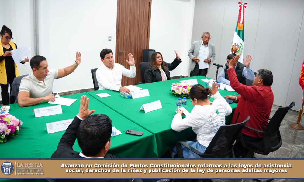 En sesión de la Comisión de Puntos Constitucionales, Gobernación y Justicia y Asuntos Políticos, que preside el diputado Jaciel González Herrera, las y los legisladores integrantes aprobaron por unanimidad los Dictámenes correspondientes a tres Iniciativas que plantean actualizar y fortalecer el marco jurídico estatal en materia de protección social, derechos de niñas, niños y adolescentes, así como la creación y operación del nuevo enfoque de atención para personas adultas mayores en Tlaxcala, todas remitidas por la gobernadora del estado, Lorena Cuéllar Cisneros con la asistencia del secretario de gobierno, Luis Antonio Ramírez Hernández.