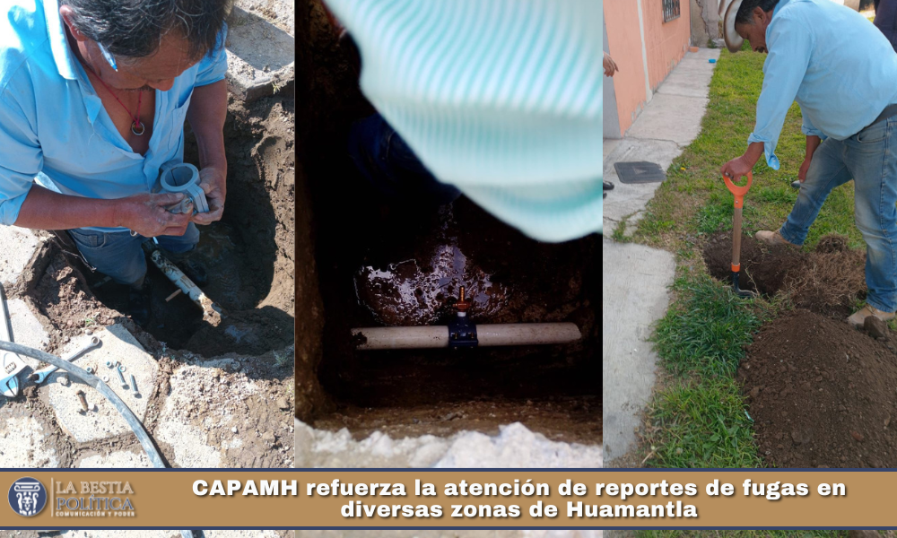 Huamantla, Tlaxcala.– La Comisión de Agua Potable y Alcantarillado del Municipio de Huamantla (CAPAMH) informó que este día continuaron los trabajos de atención y reparación de fugas en distintos puntos del municipio, como parte de las acciones permanentes para mantener en óptimas condiciones la red hídrica y mejorar el suministro para las familias huamantlecas.