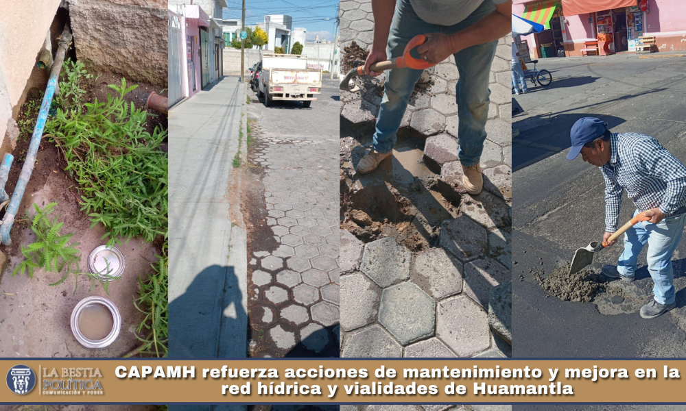 La Comisión de Agua Potable y Alcantarillado del Municipio de Huamantla (CAPAMH) informa que, bajo la coordinación de la Ing. Tania Díaz, continúan efectuándose diversas intervenciones para fortalecer el servicio de agua potable y mejorar las condiciones de las vialidades en distintos puntos del municipio.