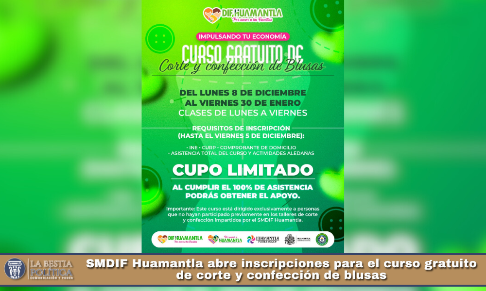 Con el propósito de brindar herramientas que fortalezcan la economía familiar y promuevan el desarrollo de nuevas habilidades, el Sistema Municipal DIF Huamantla anuncia la apertura de inscripciones para el curso gratuito de Corte y Confección de Blusas, una propuesta formativa pensada para quienes desean aprender desde cero, perfeccionar técnicas o retomar su camino en el mundo textil.