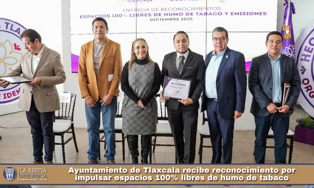 El Ayuntamiento de Tlaxcala, que preside Alfonso Sánchez García, fue distinguido por su labor en materia de salud pública al recibir el reconocimiento “Espacios 100% Libres de Humo de Tabaco y Emisiones”, otorgado al Parque Xicohténcatl por cumplir plenamente con la normativa sanitaria vigente.