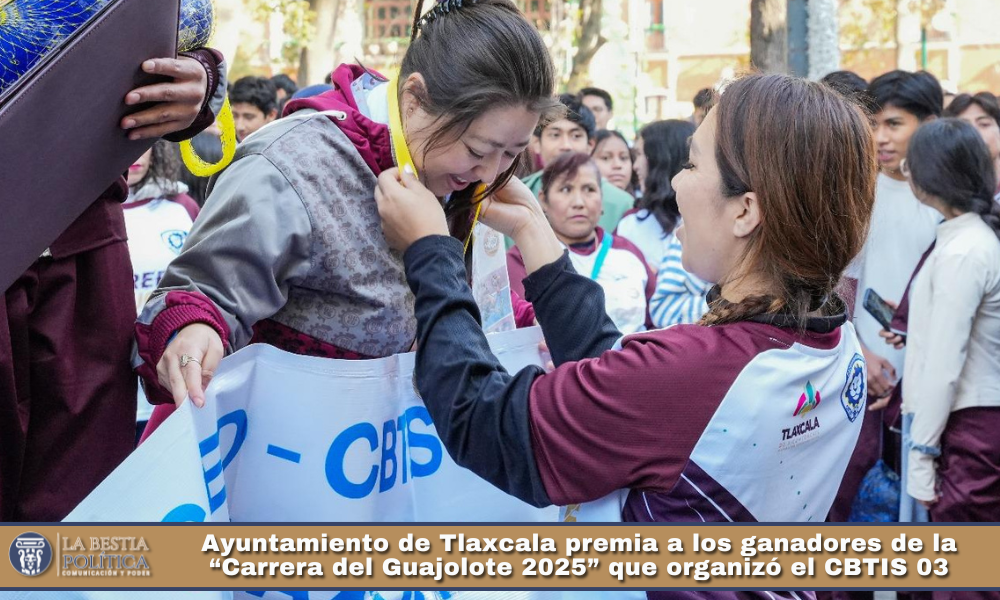 El Ayuntamiento de Tlaxcala reconoció y premió a las y los ganadores de la tradicional “Carrera del Guajolote 2025”, un evento emblemático organizado por el CBTIS 03 que este año reunió a 1,400 personas y que con ello se consolida como una de las actividades deportivas más divertidas y esperadas.