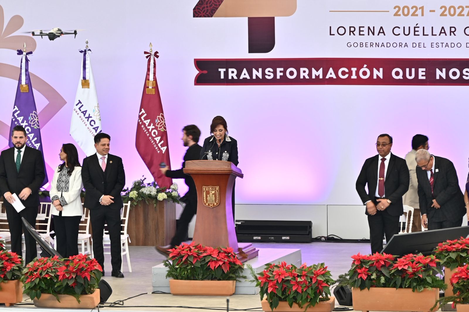 La gobernadora afirmó que hoy Tlaxcala es vista como ejemplo en políticas públicas, transparencia, seguridad y desarrollo social. “Tlaxcala ya no es vista como un problema, sino como una potencia”, expresó.