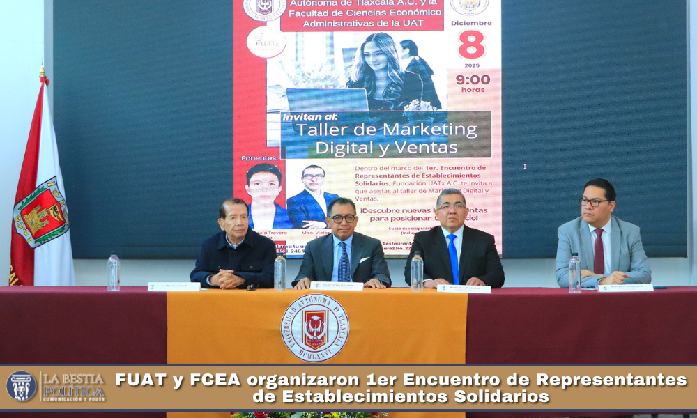 La Fundación de la Universidad Autónoma de Tlaxcala (FUATx), en colaboración con la Facultad de Ciencias Económico Administrativas, llevó a cabo el 𝟏𝐞𝐫 𝐄𝐧𝐜𝐮𝐞𝐧𝐭𝐫𝐨 𝐝𝐞 𝐑𝐞𝐩𝐫𝐞𝐬𝐞𝐧𝐭𝐚𝐧𝐭𝐞𝐬 𝐝𝐞 𝐄𝐬𝐭𝐚𝐛𝐥𝐞𝐜𝐢𝐦𝐢𝐞𝐧𝐭𝐨𝐬 𝐒𝐨𝐥𝐢𝐝𝐚𝐫𝐢𝐨𝐬, con la participación de 85 negocios aliados para fortalecer la colaboración social y los apoyos que brindan a la comunidad universitaria.