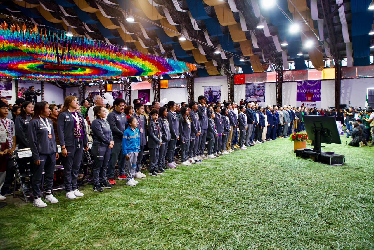 La gobernadora recordó que su administración ha cumplido 283 de los 300 compromisos establecidos al inicio del sexenio, reafirmando —dijo— que “la grandeza de Tlaxcala no depende del tamaño de su territorio, sino de la forma de gobernar con responsabilidad y amor por la gente”.