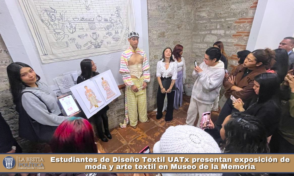 Estudiantes de tercer y noveno semestres de la Licenciatura en Diseño Textil de la Facultad de Diseño Arte y Arquitectura de la Universidad Autónoma de Tlaxcala (FDAyA-UATx) presentaron la exposición de moda y arte textil “Raíces contemporáneas tlaxcaltecas” y el 1er. Coloquio interno de resultados “La investigación/acción en el diseño textil” en el Museo de la Memoria.