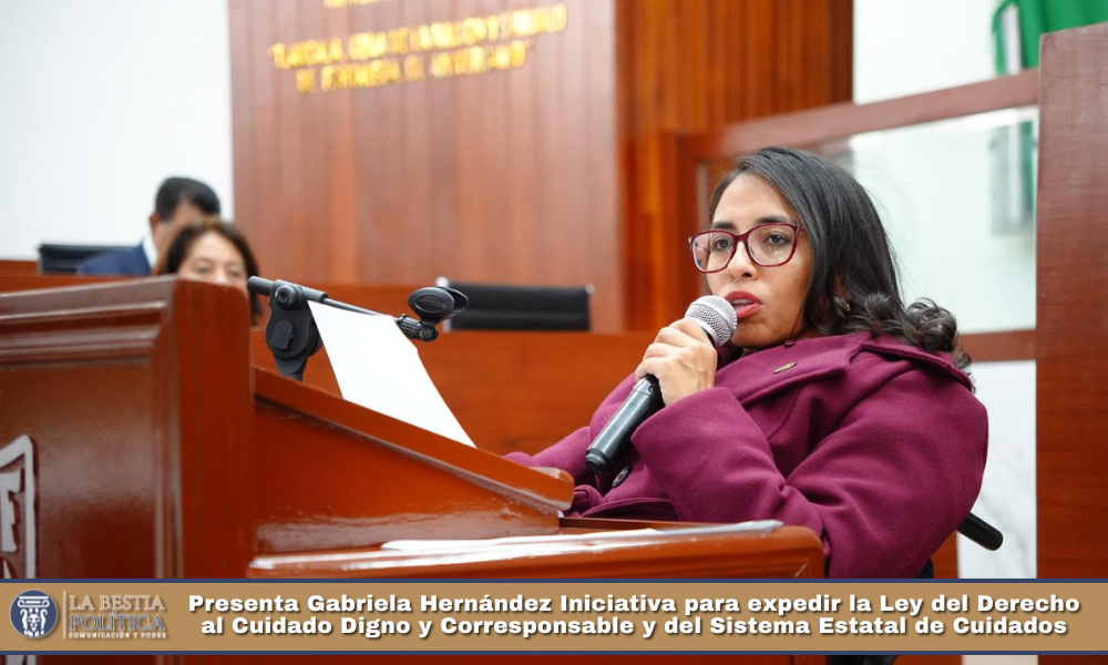 En el desarrollo de la Vigésima Octava sesión ordinaria, la diputada Gabriela Hernández Islas presentó ante el Pleno del Congreso la Iniciativa por la que propone expedir la Ley del Derecho al Cuidado Digno y Corresponsable y del Sistema Estatal de Cuidados en el Estado de Tlaxcala, con la finalidad de establecer un marco jurídico que reconozca y garantice el derecho humano al cuidado, así como sentar las bases para la organización, implementación y funcionamiento del Sistema Estatal de Cuidados.