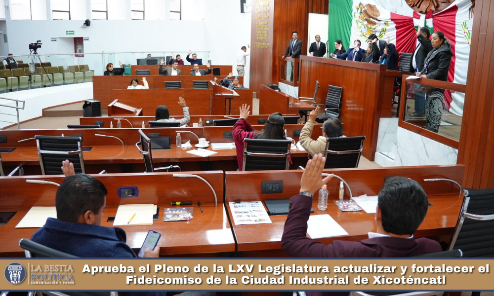 Las diputadas y diputados integrantes de la LXV Legislatura aprobaron por unanimidad el Dictamen de la Iniciativa con Proyecto de Decreto del Fideicomiso de la Ciudad Industrial de Xicoténcatl del Estado de Tlaxcala, que presenta la Comisión de Puntos Constitucionales, Gobernación y Justicia y Asuntos Políticos que preside el diputado Jaciel González Herrera.