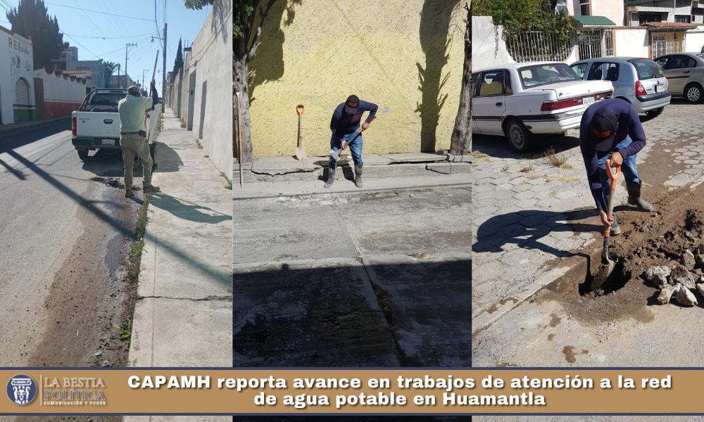 Como parte de las acciones permanentes para fortalecer el servicio de agua potable en el municipio, la Comisión de Agua Potable y Alcantarillado del Municipio de Huamantla (CAPAMH) informa sobre el avance en la atención de diversas fugas detectadas en distintos puntos de la ciudad.