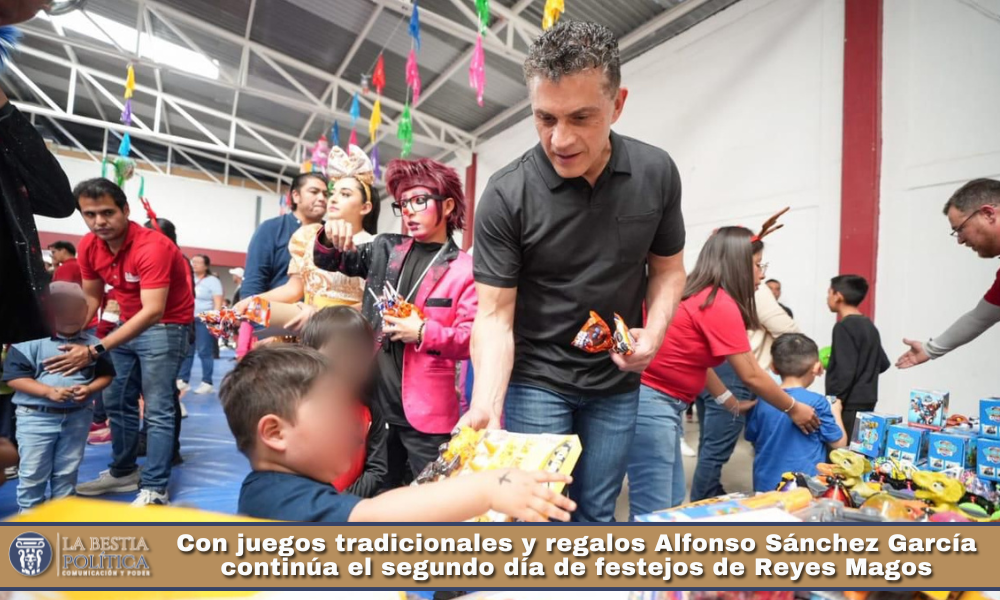 En su segundo día de los festejos con motivo del Día de Reyes, el alcalde de Tlaxcala, Alfonso Sánchez García, continúa la visita a las colonias y delegaciones de la capital con diversas actividades para acercar regalos a las niñas y niños y promover entre ellos valores y juegos tradicionales que fortalecen la sana convivencia.