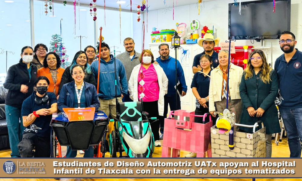 Bajo los principios del diseño humanista y con una visión centrada en el ser humano, estudiantes de la Licenciatura en Diseño Automotriz de la Universidad Autónoma de Tlaxcala (UATx) entregaron dos sillas de ruedas y dos andaderas al Hospital Infantil de Tlaxcala (HIT), como resultado del trabajo realizado en el 𝐒𝐞𝐦𝐢𝐧𝐚𝐫𝐢𝐨 𝐝𝐞 𝐈𝐧𝐭𝐞𝐠𝐫𝐚𝐜𝐢𝐨́𝐧 𝐝𝐞 𝐏𝐫𝐚𝐱𝐢𝐬 𝐏𝐫𝐨𝐟𝐞𝐬𝐢𝐨𝐧𝐚𝐥 𝟑, en un proyecto de colaboración académica y social entre ambas instituciones.