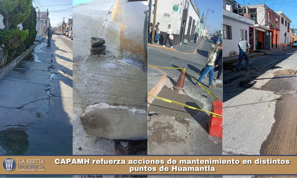 La Comisión de Agua Potable y Alcantarillado del Municipio de Huamantla (CAPAMH) continúa reforzando las acciones de atención y mantenimiento a la red hidráulica y a la infraestructura urbana en distintos puntos del municipio, con el objetivo de brindar un servicio más eficiente y seguro para la ciudadanía.