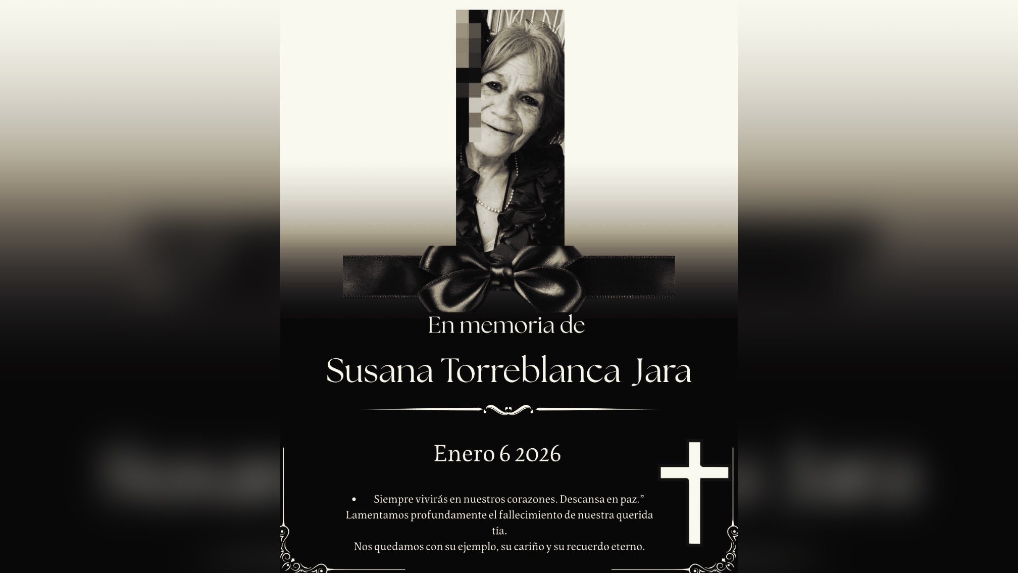 “El día lunes 5 de enero por la noche mi tía la señora Susana Torreblanca Jara fue atacada brutalmente por 2 perros pastorales Belga … con mucha violencia le arrancaron pedazos de sus piernas , estuvo en terapia intensiva 2 días, a raíz de eso mi tía perdió la vida .