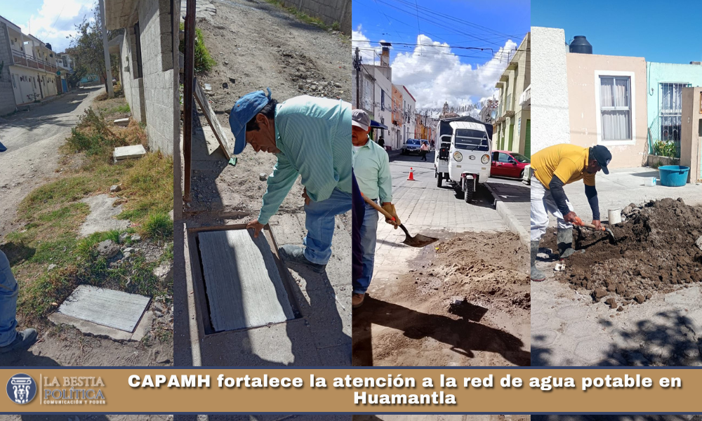 La Comisión de Agua Potable y Alcantarillado del Municipio de Huamantla (CAPAMH) continúa reforzando las acciones de mantenimiento y atención a la infraestructura hidráulica en distintos puntos del municipio, con el objetivo de garantizar un servicio más eficiente y continuo para las familias huamantlecas.