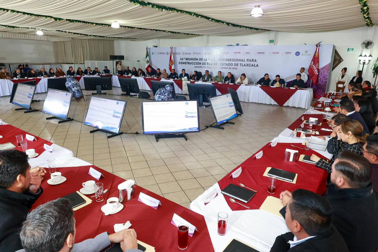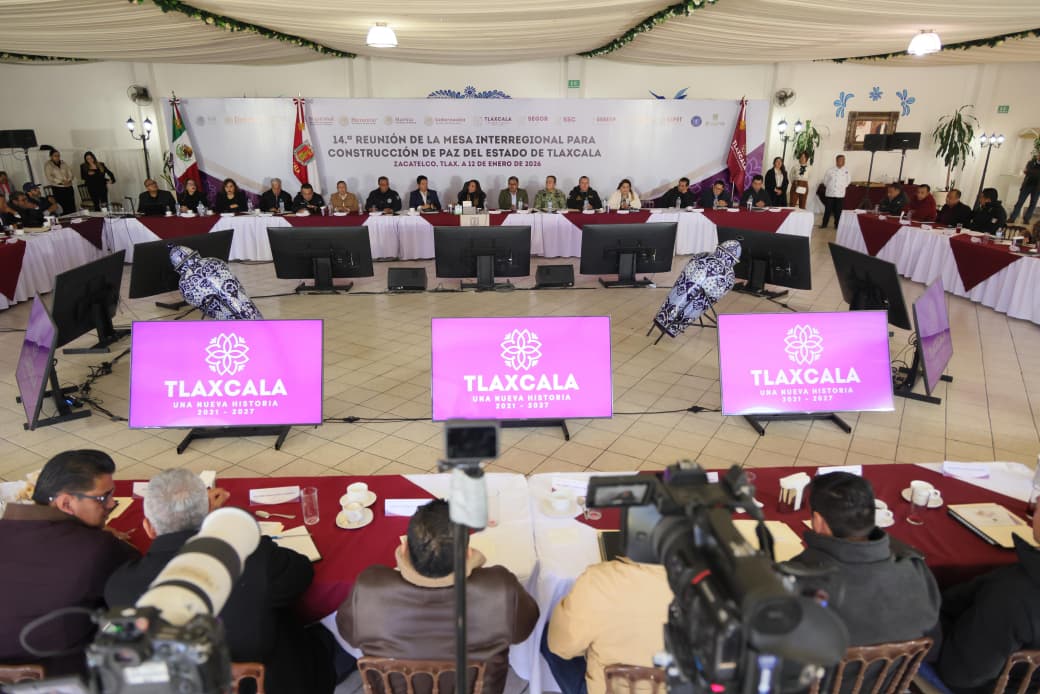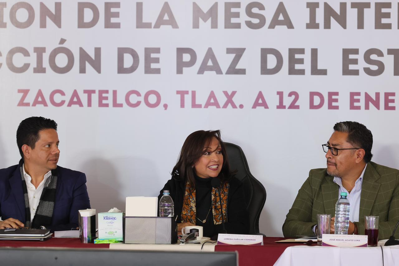 La paz y la seguridad que hoy distinguen a Tlaxcala son resultado de un esfuerzo permanente y coordinado entre autoridades estatales, municipales y la ciudadanía, afirmó la gobernadora Lorena Cuéllar Cisneros, al encabezar la 14ª Reunión de la Mesa Interregional para la Construcción de la Paz, realizada en el municipio de Zacatelco.