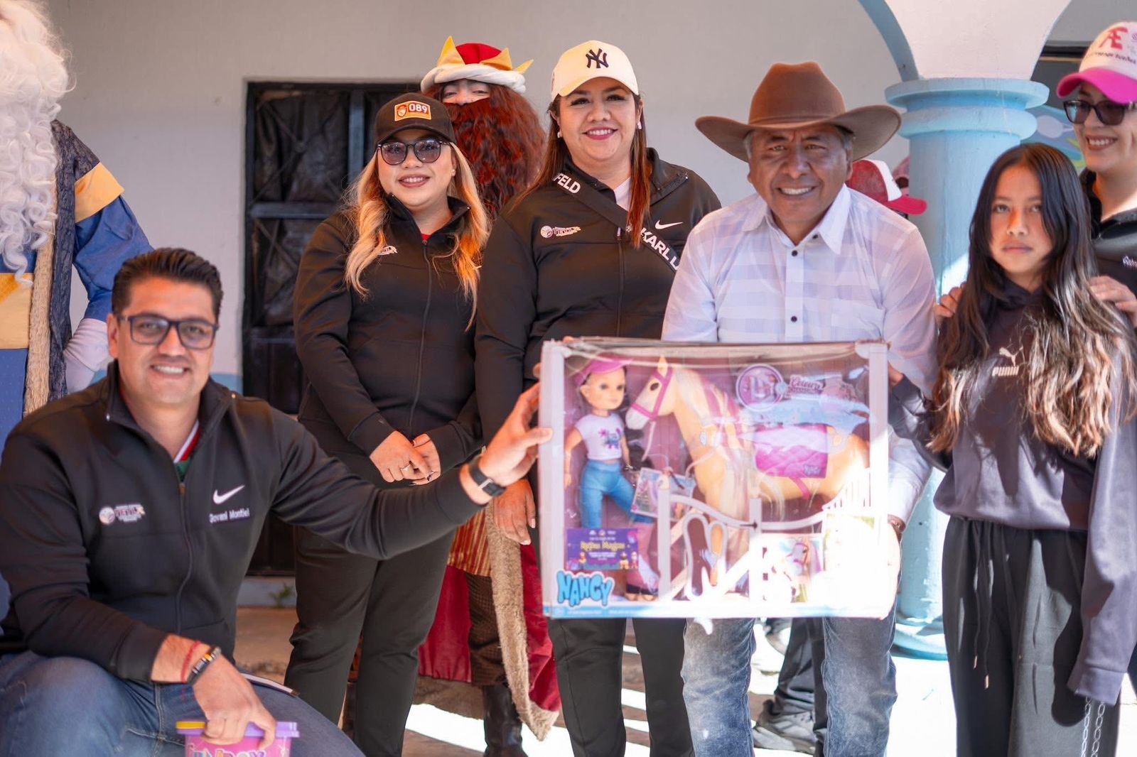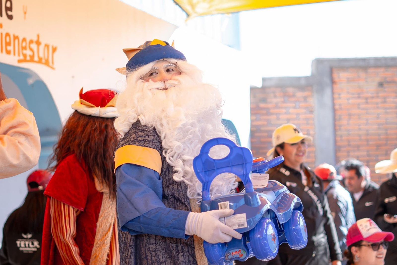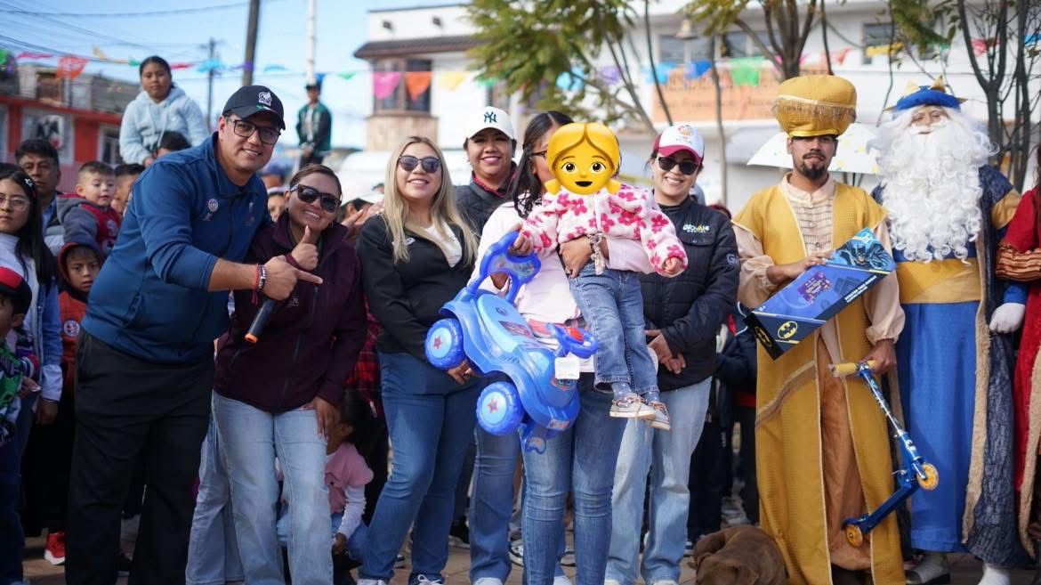 La caravana inició en comunidades como San Isidro Piedras Negras, Agrícola de Dolores, José María Morelos y Pavón, Santa Fe La Troje, Capulac y Plan de Ayala, donde niñas y niños recibieron juguetes, rosca de Reyes, dulces, algodón de azúcar y disfrutaron de espectáculos infantiles.