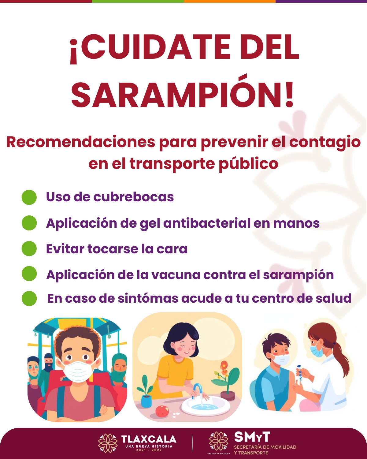 Finalmente, la Secretaría de Movilidad y Transporte reiteró que estas recomendaciones tienen un carácter preventivo y buscan salvaguardar la salud colectiva, por lo que invitó a la población a asumir una actitud responsable y solidaria, al señalar que la prevención es una tarea compartida entre quienes utilizan y operan el transporte público.