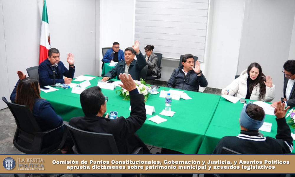 En el Salón Blanco del Congreso del Estado sesionó la Comisión de Puntos Constitucionales, Gobernación y Justicia y Asuntos Políticos, que preside el diputado Jaciel González Herrera, con el objetivo de analizar y votar tres Iniciativas con Proyecto de Acuerdo y una Iniciativa con Proyecto de Decreto relacionadas con desincorporación y ejercicio de actos de dominio de bienes municipales, así como otros asuntos de carácter legislativo.