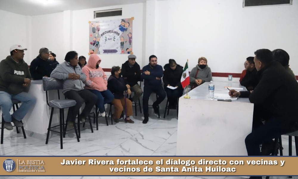 El presidente municipal de Apizaco, Javier Rivera Bonilla, encabezó un encuentro con vecinas y vecinos de las calles Cipreses y Oyameles, en la comunidad de Santa Anita Huiloac, donde refrendó el compromiso de su administración con la atención ciudadana, el diálogo permanente y el trabajo conjunto para mejorar las condiciones de vida en las comunidades.