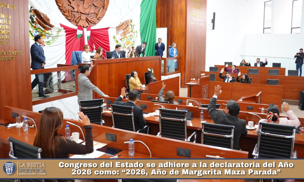 La LXV Legislatura del Congreso del Estado de Tlaxcala se adhirió a la declaratoria del Año 2026 como: “2026, Año de Margarita Maza Parada”, luego de que las diputadas y los diputados aprobaron el Dictamen presentado por la Comisión de Puntos Constitucionales, Gobernación y Justicia y Asuntos Políticos, que preside el diputado Jaciel González Herrera, y que tuvo como iniciativa de origen la propuesta promovida por la diputada Madai Pérez Carrillo.