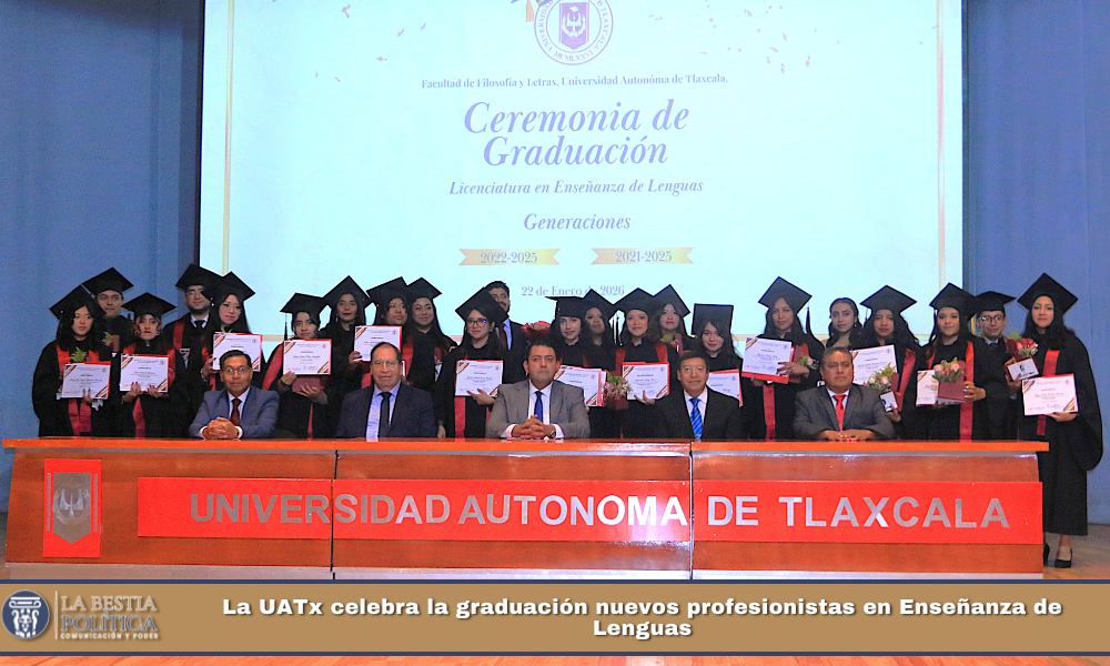 Los profesionales en la Enseñanza de Lenguas favorecen la comunicación, el entendimiento entre personas y la vinculación entre contextos diversos, lo cual quedó de manifiesto en la ceremonia de graduación de 40 estudiantes, generaciones 2021-2025 y 2022-2025, de la Licenciatura en Enseñanza de Lenguas de la Facultad de Filosofía y Letras de la Universidad Autónoma de Tlaxcala (FFyL-UATx).