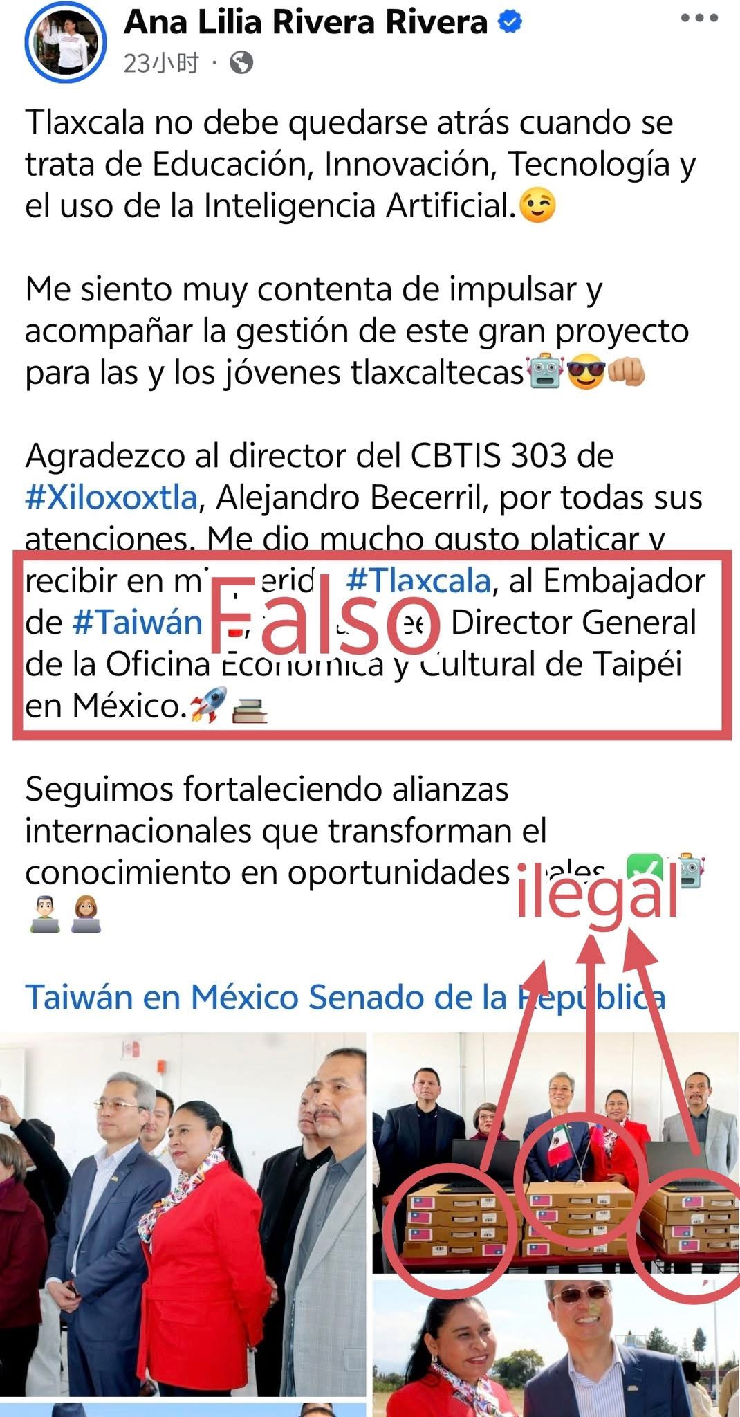El comunicado hace referencia específica a la senadora Ana Lilia Rivera Rivera, quien en sus redes sociales agradeció la donación y se fotografió junto al director Lee, refiriéndose a él como «Embajador de Taiwán».