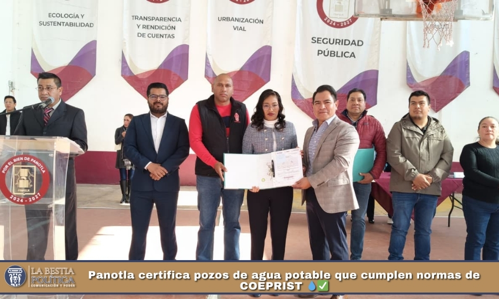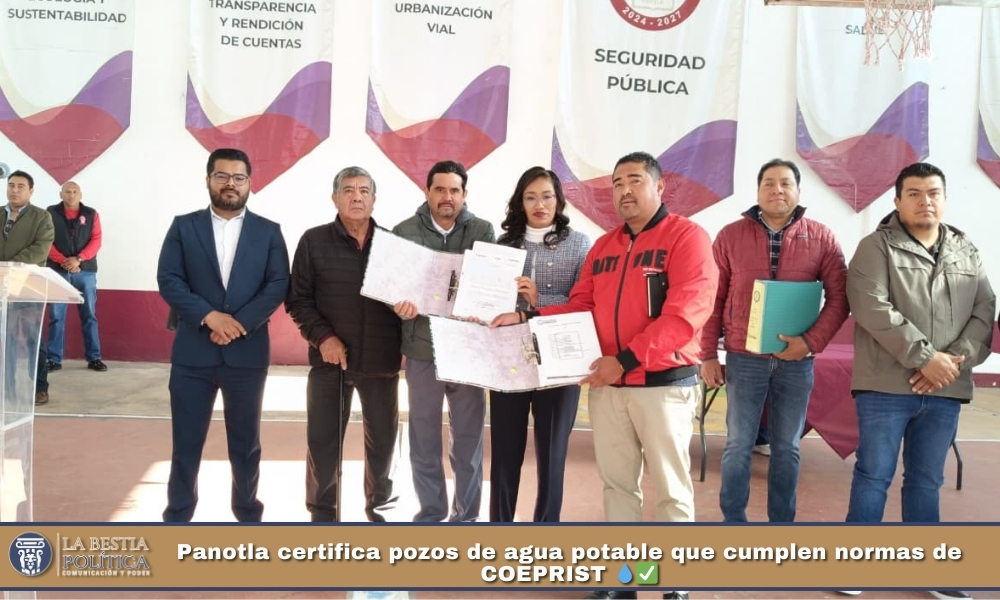 El Ayuntamiento de Panotla certificó siete pozos de agua potable del municipio y sus comunidades, los cuales cumplen con las normas establecidas por la Comisión Estatal para la Protección contra Riesgos Sanitarios de Tlaxcala (COEPRIST), garantizando la calidad y seguridad del suministro de agua para la población.