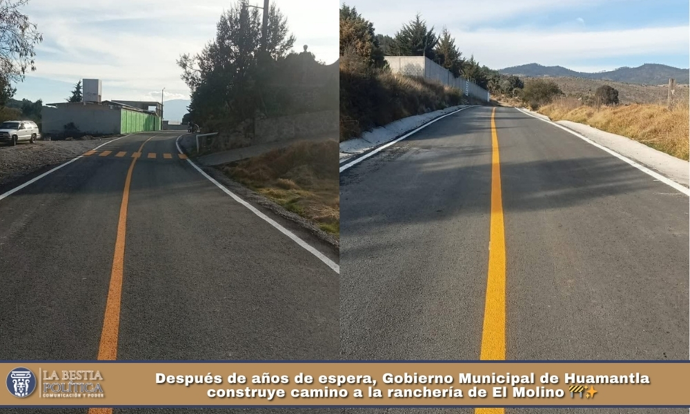 Huamantla, Tlaxcala.– Después de muchos años de solicitudes y gestiones sin respuesta, el Gobierno Municipal de Huamantla cumplió con la ranchería de El Molino al concluir la construcción del camino que conecta a esta comunidad, una obra largamente esperada por sus habitantes.