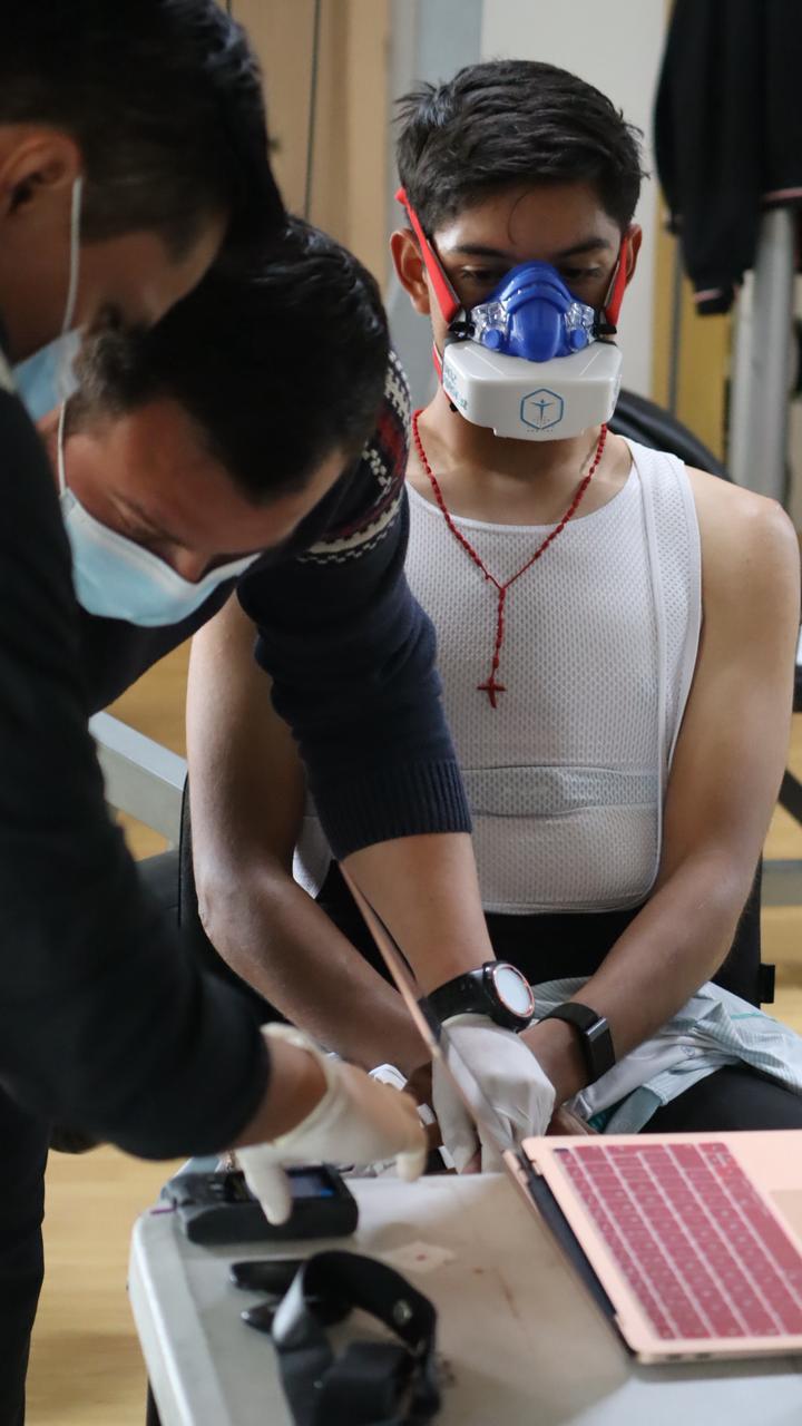 De igual forma, se realizan análisis sanguíneos que funcionan como bioindicadores fundamentales para determinar el nivel de exigencia al que es sometido el organismo durante los entrenamientos. Estas evaluaciones se complementan con el uso de una máscara especializada que mide la emisión de dióxido de carbono, permitiendo un análisis más preciso del comportamiento metabólico durante el esfuerzo físico.