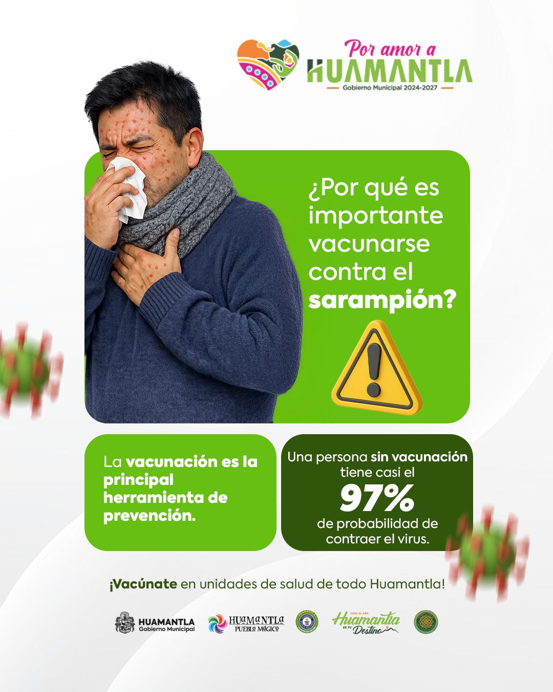 Con el objetivo de proteger la salud de la población y prevenir posibles contagios, el Gobierno Municipal de Huamantla emitió una serie de recomendaciones preventivas ante el sarampión, informando a la ciudadanía sobre esta enfermedad, sus síntomas y las principales medidas para evitar su propagación.
