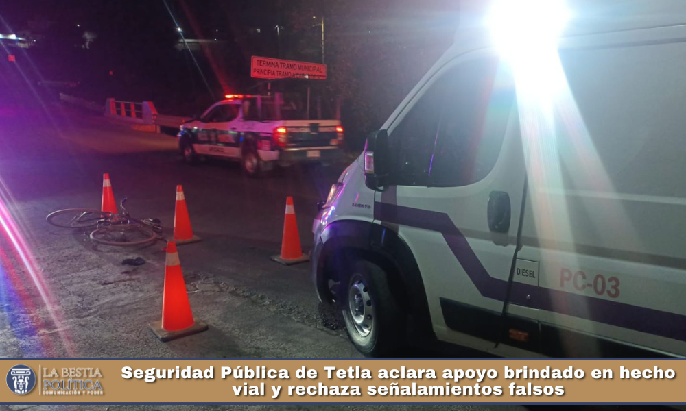 El Gobierno Municipal de Tetla de la Solidaridad, a través de la Dirección de Seguridad Pública Municipal, informa a la ciudadanía y a los medios de comunicación sobre los hechos ocurridos el día de hoy en la carretera Apizaquito–Tetla de la Solidaridad, los cuales han sido difundidos de manera incorrecta en redes sociales por un medio de comunicación que distorsiona la realidad.