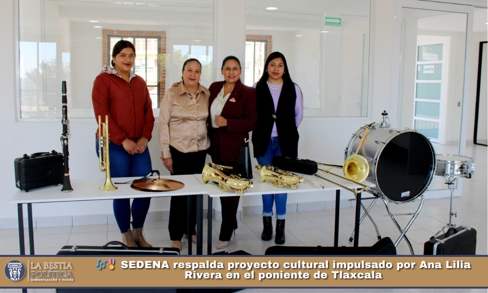 La Secretaría de la Defensa Nacional (SEDENA), encabezada por el General Ricardo Trevilla Trejo, respaldó el proyecto cultural impulsado por la senadora Ana Lilia Rivera Rivera, al concretarse la donación de instrumentos musicales destinados a la Escuela de Música Regional Canto del Lobo en el poniente de Tlaxcala.