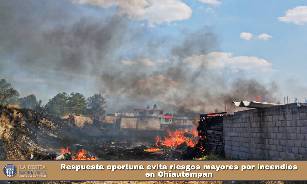 La oportuna intervención del Gobierno Municipal de Chiautempan, encabezado por la alcaldesa Blanca Angulo Meneses, permitió atender y extinguir diversos incendios registrados en las comunidades de Texcacoac, Cuahuixmatlac e Ixcotla, evitando riesgos mayores para la población y el medio ambiente.