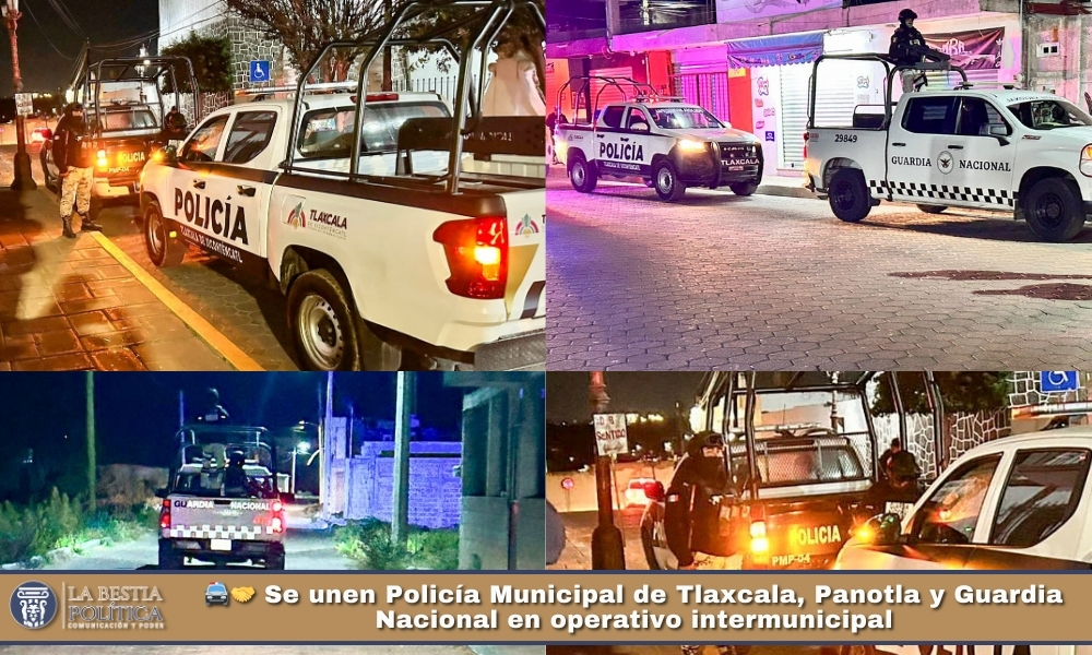 Con el objetivo de inhibir conductas delictivas y reforzar la tranquilidad de la población, la Policía Municipal de Tlaxcala llevó a cabo un operativo intermunicipal en coordinación con elementos de la Policía Municipal de Panotla y la Guardia Nacional (GN), durante la noche de este jueves.