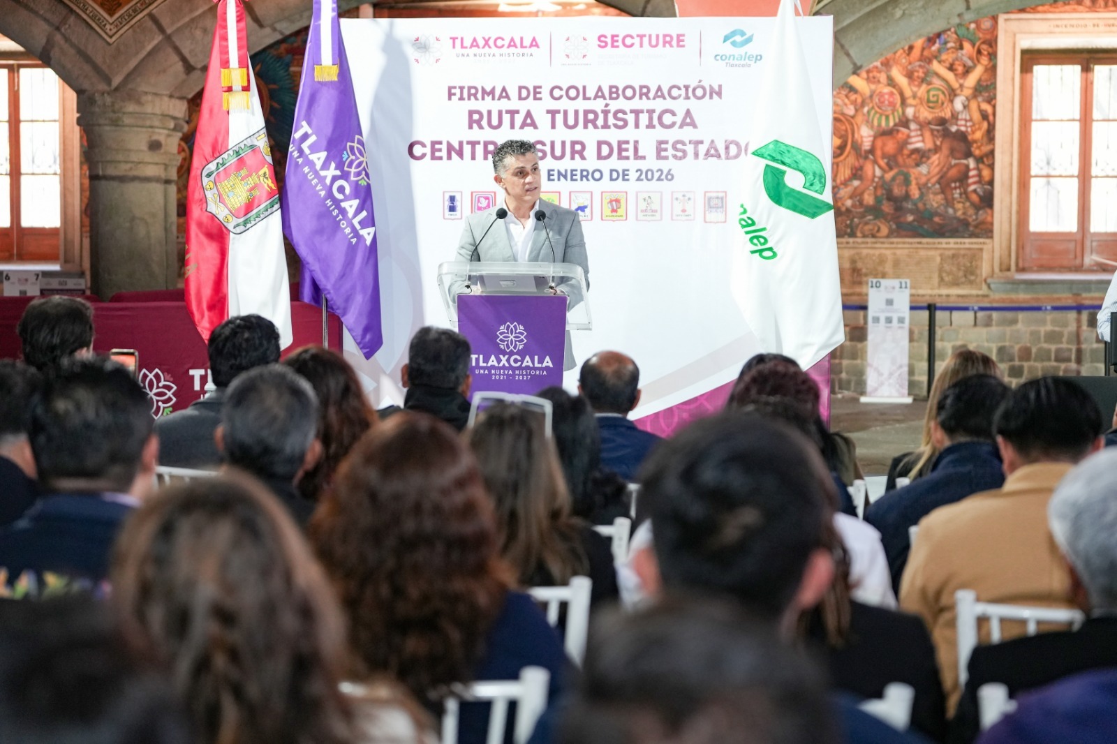 Con el propósito de fortalecer el desarrollo turístico, cultural y económico de la región, el presidente municipal de Tlaxcala, Alfonso Sánchez García, participó en la firma del Convenio de Colaboración de la Ruta Turística Centro-Sur del estado, una estrategia que articula esfuerzos del Gobierno del Estado, la Secretaría de Turismo, CONALEP Tlaxcala y nueve municipios, entre ellos la capital.