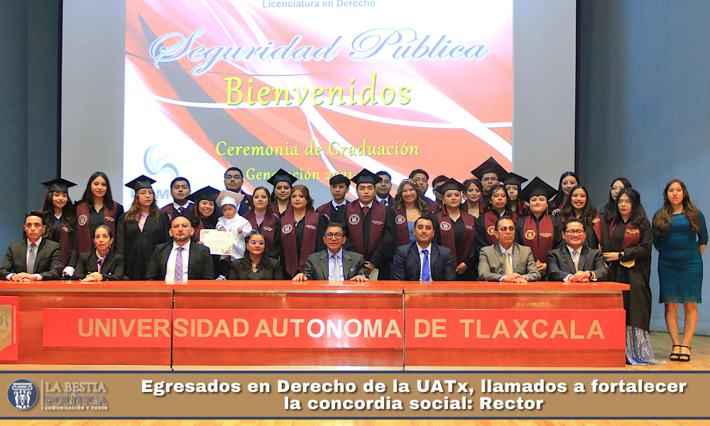 Nuestro país requiere fortalecer el escenario normativo y valorativo para tener una vida con mayor tranquilidad, y los egresados en Derecho de la Universidad Autónoma de Tlaxcala (UATx) tienen las herramientas necesarias para involucrarse en la resolución de problemas sociales, consideró el Rector, Doctor Serafín Ortiz Ortiz, durante la ceremonia de graduación de estudiantes de la Unidad Académica Multidisciplinaria Campus Teacalco (UAMCT).