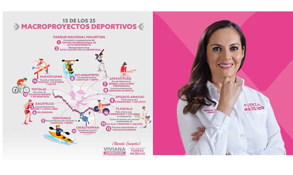 Su mensaje periférico es «La salud física y emocional es la base que sostiene nuestro proyecto. Que el acceso al deporte sea para todas y todos, no sólo para unos cuantos. Por eso estos son 15 de los 25 macroproyectos que realizaré en mi gobierno y que tendrán instalaciones de primer nivel, equipamiento y entrenadoras y entrenadores para tu preparación».