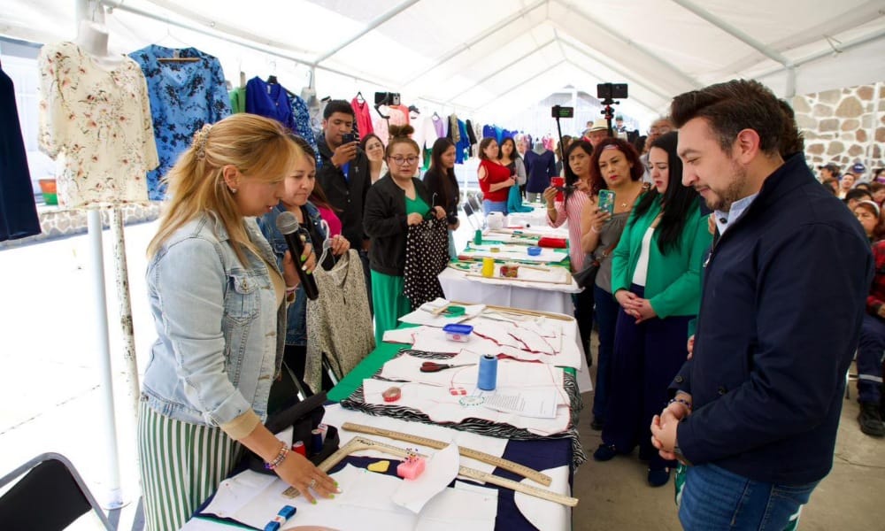La actividad inició con la clausura del curso de corte y confección de blusas, impulsado por el Sistema Municipal DIF, donde más de 90 mujeres concluyeron un proceso de formación orientado al autoempleo. Como parte de este respaldo, las beneficiarias recibieron una máquina de coser, herramienta que contribuirá directamente al fortalecimiento de la economía familiar.