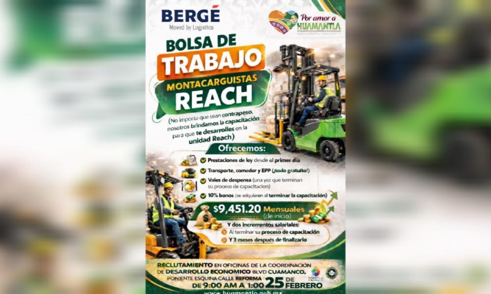 Con el objetivo de acercar más oportunidades laborales a los huamantlecos, el Gobierno Municipal de Huamantla que encabeza Salvador Santos Cedillo, a través de la Coordinación de Desarrollo Económico, invita a participar en la jornada de reclutamiento que se llevará a cabo el próximo 25 de febrero, en un horario de 9:00 a 13:00 horas en las oficinas ubicadas en Blvd. Cuamanco Poniente, esquina con calle Reforma.