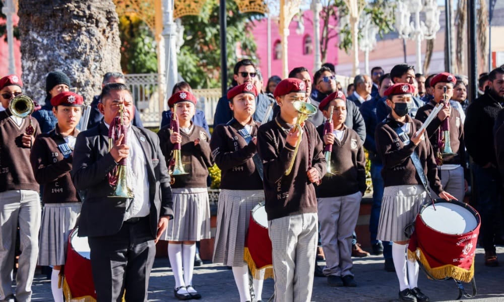 Con la participación de estudiantes y directivos de la Escuela Secundaria Técnica No. 35 así como integrantes del Cabildo y ciudadanía en general, la presidenta municipal de Chiautempan, Blanca Angulo Meneses, encabezó los honores e izamiento de la Bandera de México en el marco de su conmemoración.