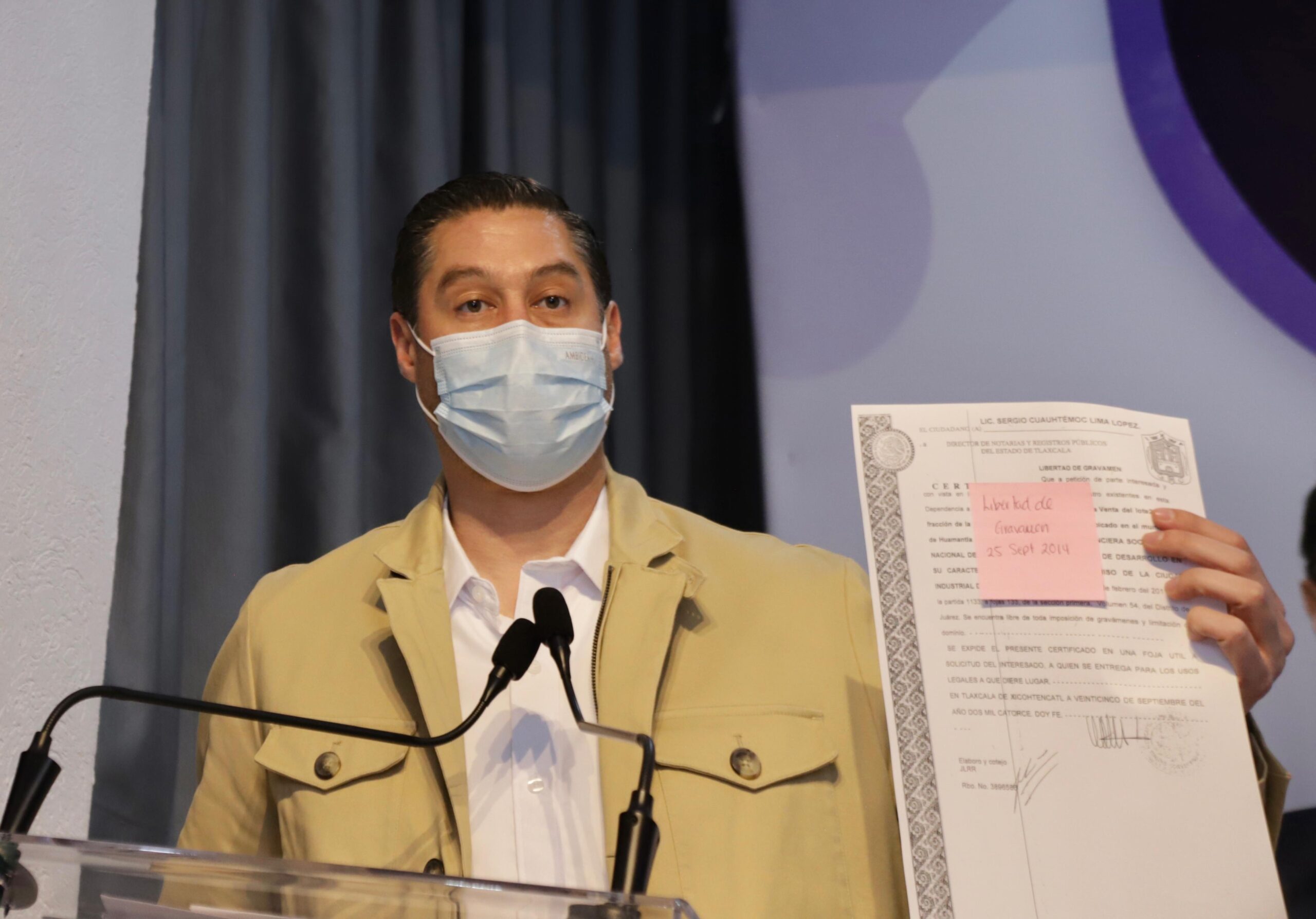 Durante su participación en el Diálogo Circular realizado este martes en la Coordinación de Comunicación, el funcionario exhibió certificados de libertad de gravamen con fechas que van de 2014 a febrero de 2026, documentos que respaldan la situación legal del predio.