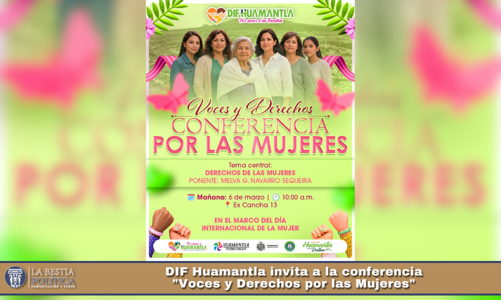 En el marco de las actividades conmemorativas por el Día Internacional de la Mujer, el Sistema Municipal para el Desarrollo Integral de la Familia (SMDIF) de Huamantla invita a la ciudadanía a participar en la conferencia “Voces y Derechos por las Mujeres”, un espacio de reflexión y diálogo sobre la importancia de garantizar y promover los derechos de las mujeres.