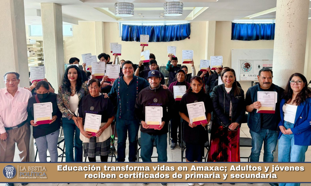 Con emoción, orgullo y la certeza de que nunca es tarde para aprender, jóvenes y personas adultas del municipio de Amaxac de Guerrero recibieron sus certificados de primaria y secundaria por parte del Instituto Tlaxcalteca para la Educación de Jóvenes y Personas Adultas (ITEJPA), un paso que marca el cierre de una etapa pendiente y el inicio de nuevas oportunidades de desarrollo.
