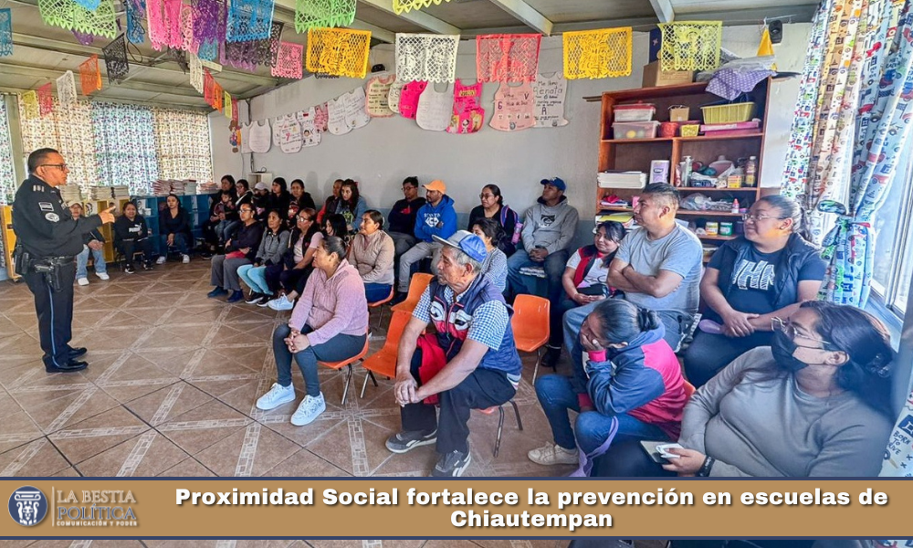 El Gobierno Municipal de Chiautempan, a través del área de Proximidad Social perteneciente a la Dirección de Seguridad Pública, mantiene de manera permanente visitas a distintas instituciones educativas del municipio, donde se brindan actividades didácticas a estudiantes y pláticas informativas dirigidas a madres y padres de familia. Estas acciones tienen como objetivo fortalecer la cultura de la prevención, promover la convivencia sana y generar entornos más seguros para las niñas, niños y jóvenes chiautempenses.