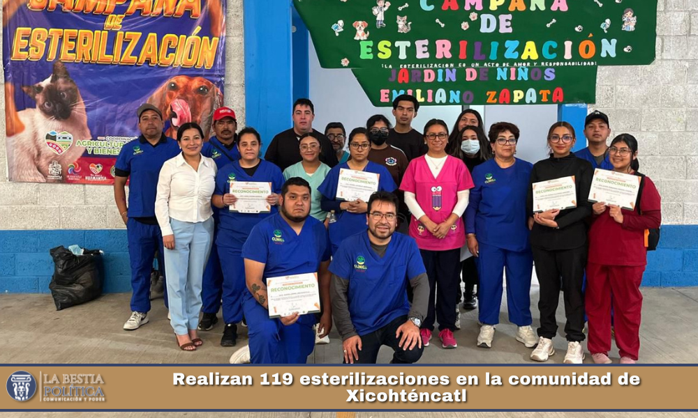 Con el objetivo de fomentar el bienestar animal y contribuir a la salud pública, se llevó a cabo una jornada de esterilización en la comunidad de Xicohténcatl, donde se realizaron 119 procedimientos a perros y gatos.