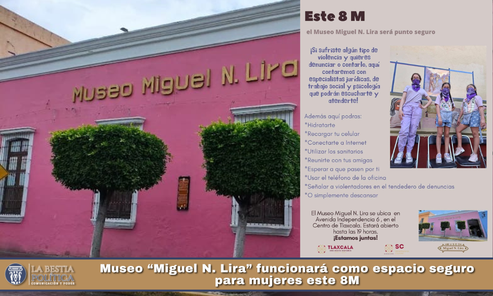El Museo «Miguel N. Lira» se ubica en Avenida Independencia número 6, en el Centro de Tlaxcala, y permanecerá abierto hasta las 19:00 horas, reiterando su compromiso de ser un espacio cultural que promueve el respeto, la escucha y la seguridad de las mujeres durante la conmemoración del 8M.